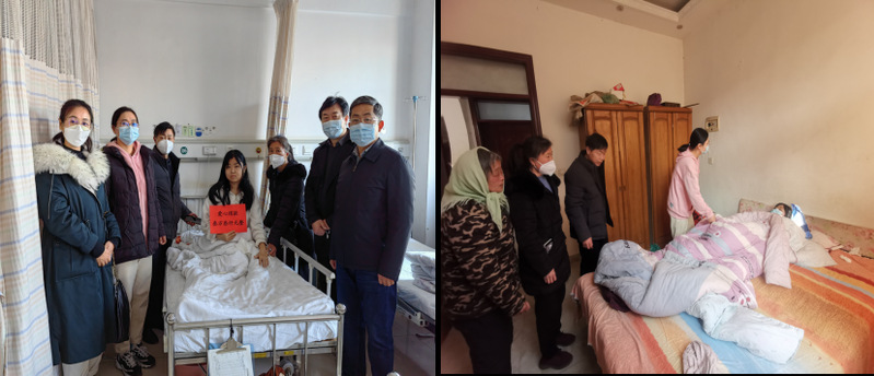 病魔无情,人间有爱。赵玉茹入院后,学院领导非常关心,专门安排副书记和辅导员进行日夜陪护,及时向学校汇报了该生的情况,校领导高度重视,要求切实做好患病学生的临时救助和关心关爱。为帮助赵玉茹同学解决困难,2月14日,学院发起爱心捐助行动,全体教职工积极响应,短短半天募集捐款33000元,同时为该生申请了特殊困难补助、家庭经济困难补助、就医帮扶。2月15日,学生工作处处长姜忠华处长和学院党总支书记邱玉刚到病房进行探望,转达了学校和学院的深切问候,将33000元捐款全部送到赵玉茹同学手中。面对学校领导和老师们的关心关怀,赵玉茹及家长非常感动,赵玉茹泣不成声的说:自患病以来,一直得到学院老师和同学们的悉心照顾,非常感激,一定积极配合治疗,争取早日返校。赵玉茹出院后,由学院副书记、辅导员将该生及父母安全送回家。