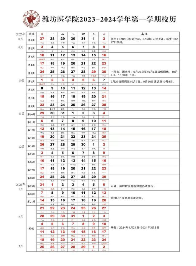 2023-2024学年校历查看